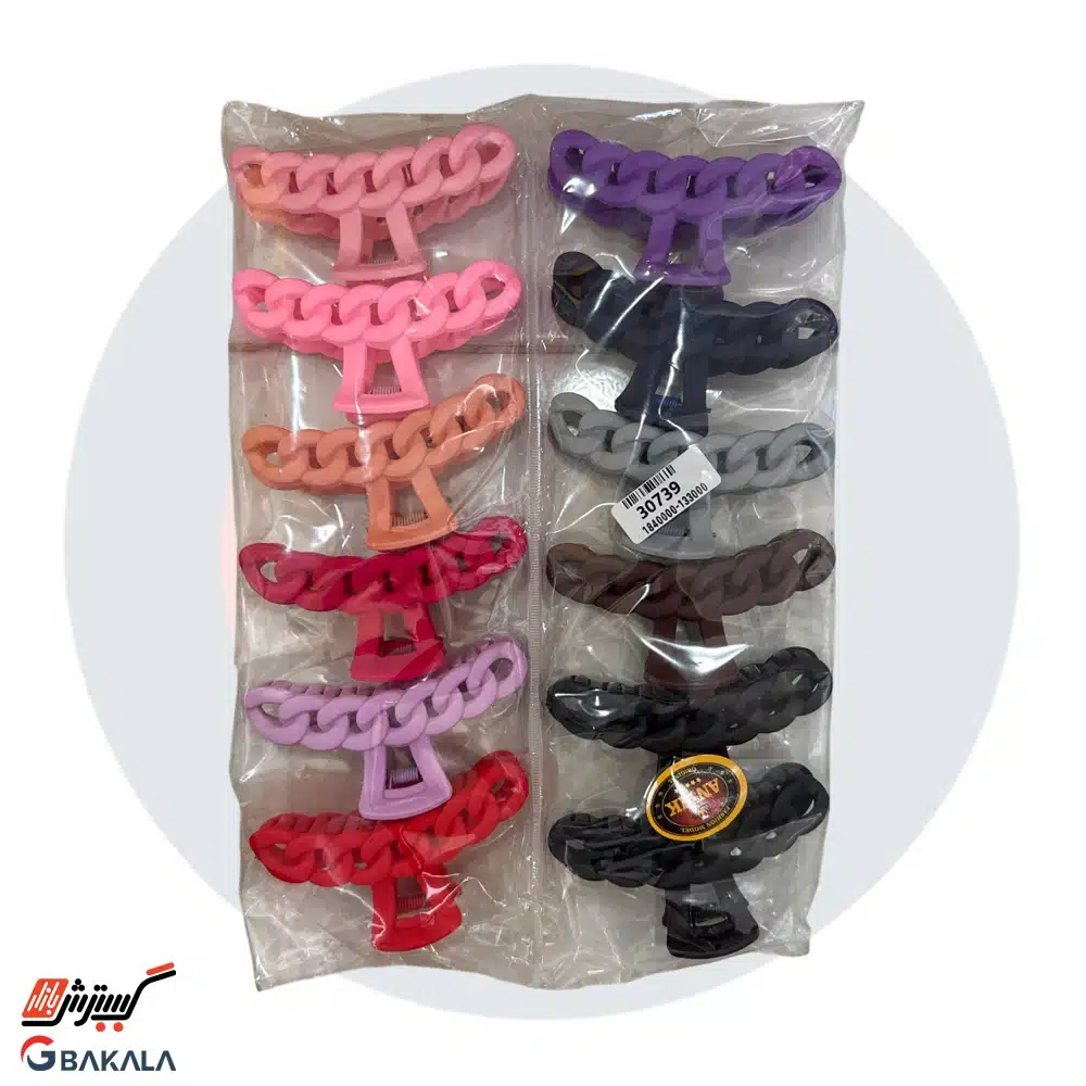کلیپس مو طرح بافتی ۱۲ عددی مجموعهای از کلیپسهای رنگارنگ و با کیفیت است که هر یک با طرحی بافتمانند و در همتنیده تزئین شدهاند.